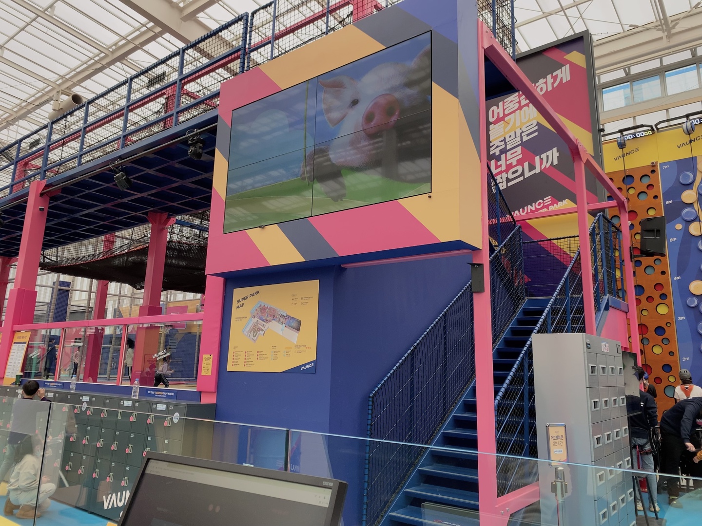 트램폴린 큰 곳이 나온다. 여기서도 당연히 미끄럼방지 양말을 착용해야 하고, 엄청 커서 놀기 좋다.